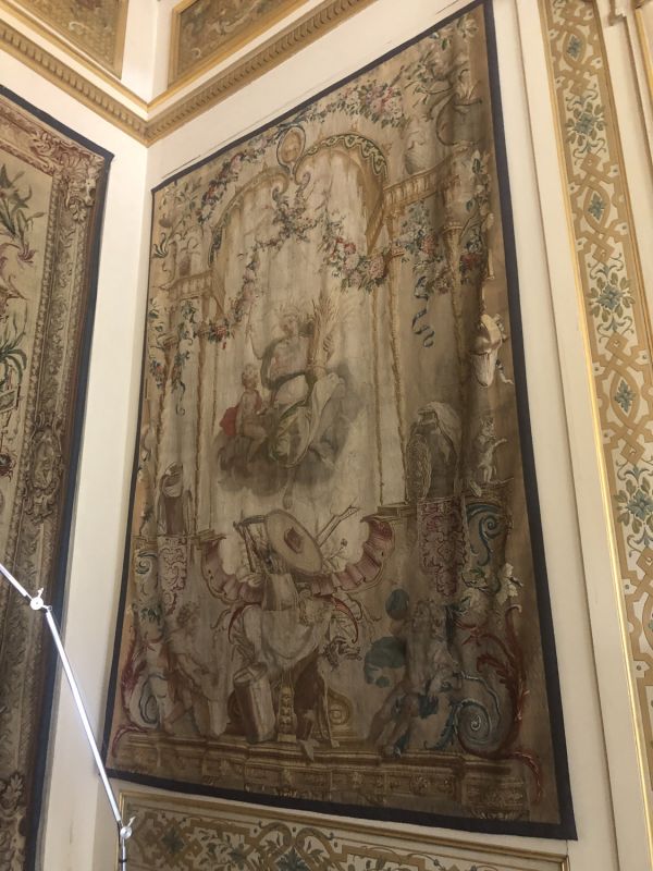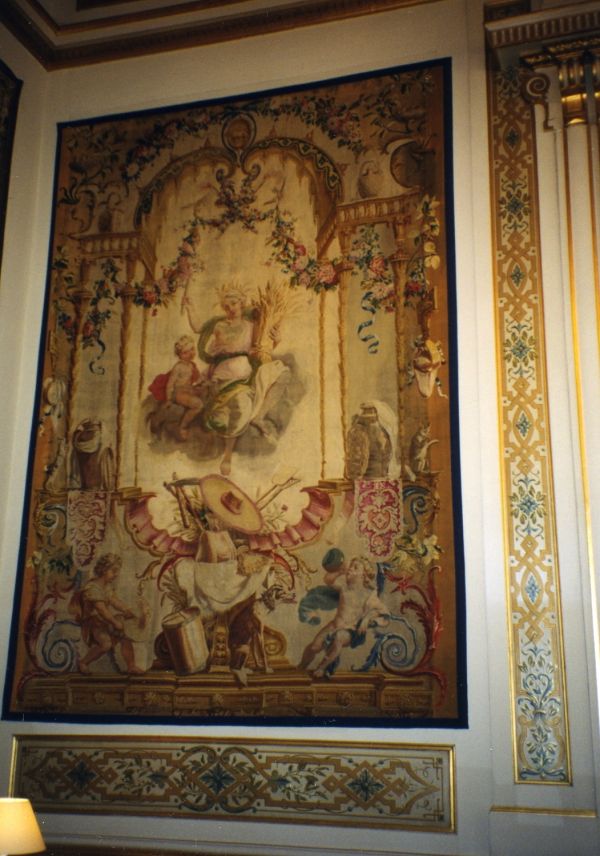 En place en 1905 au ministère des Affaires étrangères, quai d'Orsay (hôtel du Ministre, 1er étage, grand salon de réception). Classée au titre des Monuments historiques, avec cinq autres de la même tenture, le 10 juin 1905 (IAT 12, 13, 14, 15, 16, 17) (PM75003341 ; réf. de l'ensemble : PM75002230).
