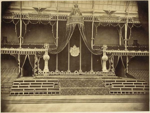 Exposition universelle de Pierre Petit. Vue sur le trône et parterre pour la famille royale.