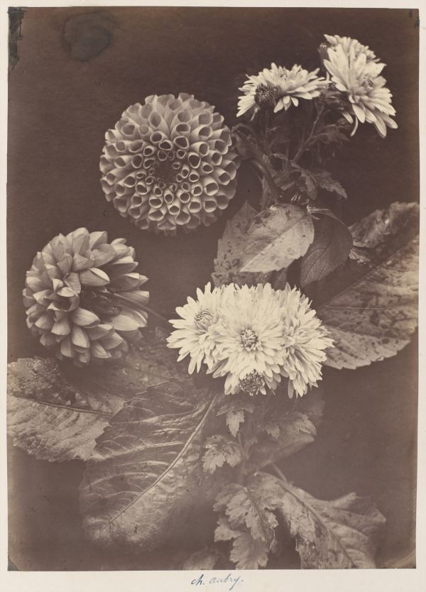 Collodion albumine, collés sur carton représentant des fruits ou des fleurs ou des oeuvres d'art.