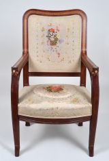 Bois : Acajou marqueté d'ébène, d'espenille et d'ivoire.