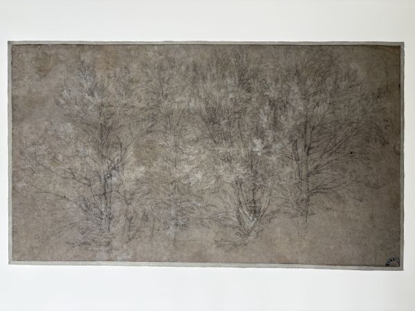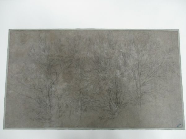 cette très belle étude d'arbres sur papier bleu ne correspond pas au style plus spontané et plus libre de