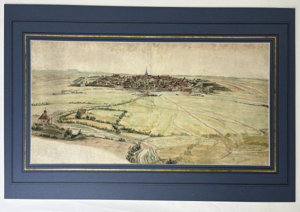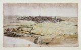 Aquarelle sur légère esquisse à la plume et encre brune avec rehauts de gouache, sur papier beige.