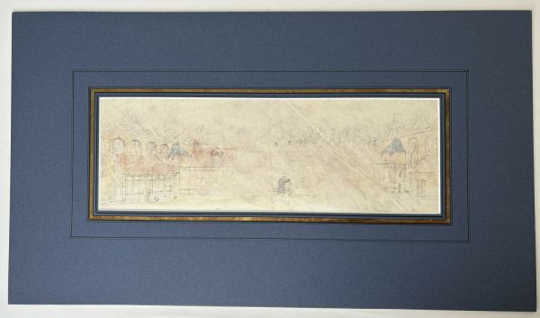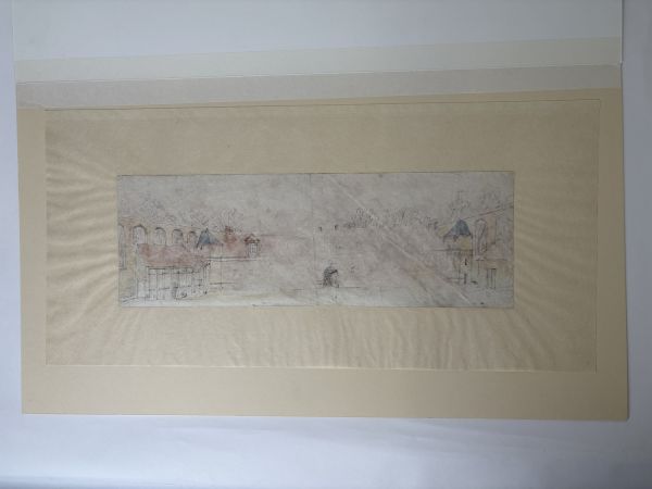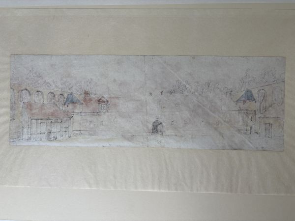 Mine de plomb avec rehauts d'aquarelle. Au verso de même technique : Corps de bâtiments.