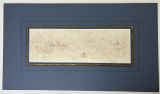 Taches brunes. Pliure centrale verticale. Collé en plein sur carton.