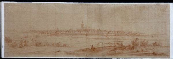 La conquête de la ville de Naarden le 20 juillet 1672, relatée par le marquis de Quincy, eut lieu rapidement : « Le Roy détacha le marquis de Rochefort qui partit d’Utrecht avec un corps de troupes pour avancer dans le païs ; il trouva la pluspart des villes abandonnées ; il marcha sans opposition jusqu'à Naerden qu'il attaqua et qu'il prit après une faible résistance» (1726, 1, p. 328). Cette Vue de Naarden où s'élève, au centre, sans doute l'église Saint-Vitus (Exp. Amsterdam, 1982-1983, cat. 23), servit de carton pour l'arrière-plan de la peinture du Musée de Versailles actuellement classée à J.B. Martin (MV 2206 - Constans, 1980, n° 3174 - H. 2,62 : L. 1,71). Originellement d'un format presque carré (5 pi. 4 po ; 5 pi, 1/2 po) le tableau était destiné à la décoration des dessus de cheminées de Marly comme l'indique un paiement versé en 1688 à l'artiste flamand (Guiffrey, 1891, 1. III, col. 90). La Prise de Naerden inventoriée parmi les œuvres de Van der Meulen par Paillet en 1695 (A.N. O1 1966 3 ), est à nouveau donnée par Bailly, en 1709-1710, au maître (A.N. O1 1978 B ). Son classement actuel à .J.B. Martin s'explique sans doute par l'étroite collaboration qui exista entre cet artiste et Van der Meulen. Relevons par exemple dans l'Inventaire Van der Meulen une esquisse dévoilant nettement le travail d’équipe : « Au Roy, une copie de Naerden, le paysage par Martin, les figures au trait avec le pinceau, par le s r Van der Meulen (2 pi 9 po sur 1 pi 9 po) » (p. 138). cette peinture peut être identifiée avec celle conservée au Rijksmuseum d’Amsterdam dont les mesures el l'état d'achèvement sont identiques (Inv. A 3960 - Van Thiel, de Bruyn Kops, Cleveringa, Klœk, Vels Heijn, 1976, p. 381, repr.). Le traitement appliqué de la présente Vue de Naarden, visant à simplifier les formes en raison môme de la finalité de l'œuvre, peut au premier abord susciter quelques réserves. Toutefois les affinités stylistiques avec la Vue de Grave (cat. 80) dont l'attribution à Van der Meulen semble vraisemblable, incitent à laisser le dessin sous ce nom.
