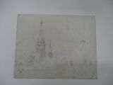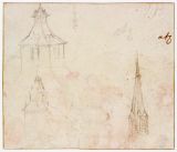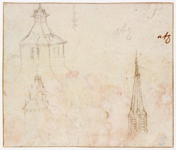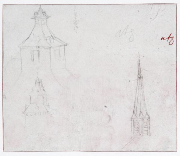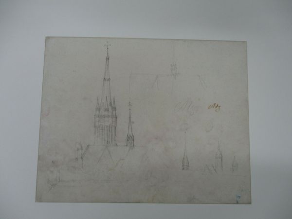 Mine de plomb, reprise à la plume et encre brune (pour le clocher).