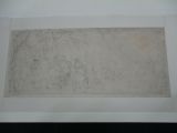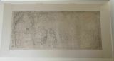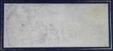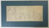 Pliure centrale verticale. Trait d'encadrement à la mine de plomb. Lacunes en bas à gauche. Collé en plein sur carton.