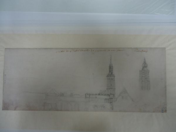 - Annoté à la plume et encre noire en haut : Cloisse de l'hotel de ville de Valencien de mon homme / Boufroy.