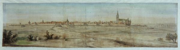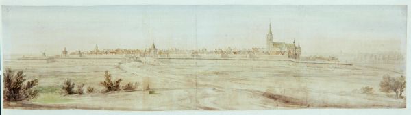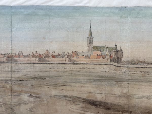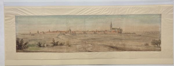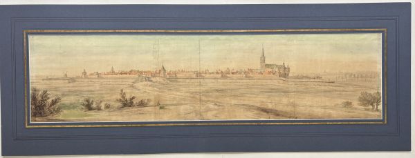 Cette Vue d'Elburg a été dessinée par Van der Meulen à la suite de la conquête de la ville dirigée par le duc de Luxembourg qui opérait dans la région d'Overijssel (Marquis de Quincy, 1726, I, p. 325). La place, fortifiée, est bordée à l'arrière-plan par l'Ijsselmeer. Des rehauts postérieurs de gouache, appliqués notamment au premier plan et dans la partie supérieure du dessin, affaiblissent la composition. Des retouches peuvent être relevées sur bon nombre de vues de villes de Hollande ; citons, par exemple, celles de Burich (cat. 44) et de Rees (cat. 47). Le présent dessin, laissé dans l'atelier après la mort de Van der Meulen, fut sans doute utilisé par P.D. Martin qui exécuta pour Marly une Prise d'Elburg actuellement inconnue. Le tableau est mentionné dans un mémoire de 1699 avec cinq autres toiles du même artiste (A.N.O 1 1964 7 - cf. cat. 45), puis à nouveau dans l'inventaire Bailly de 1709-1710 (Engerand, 1899, p. 521, n° 6).